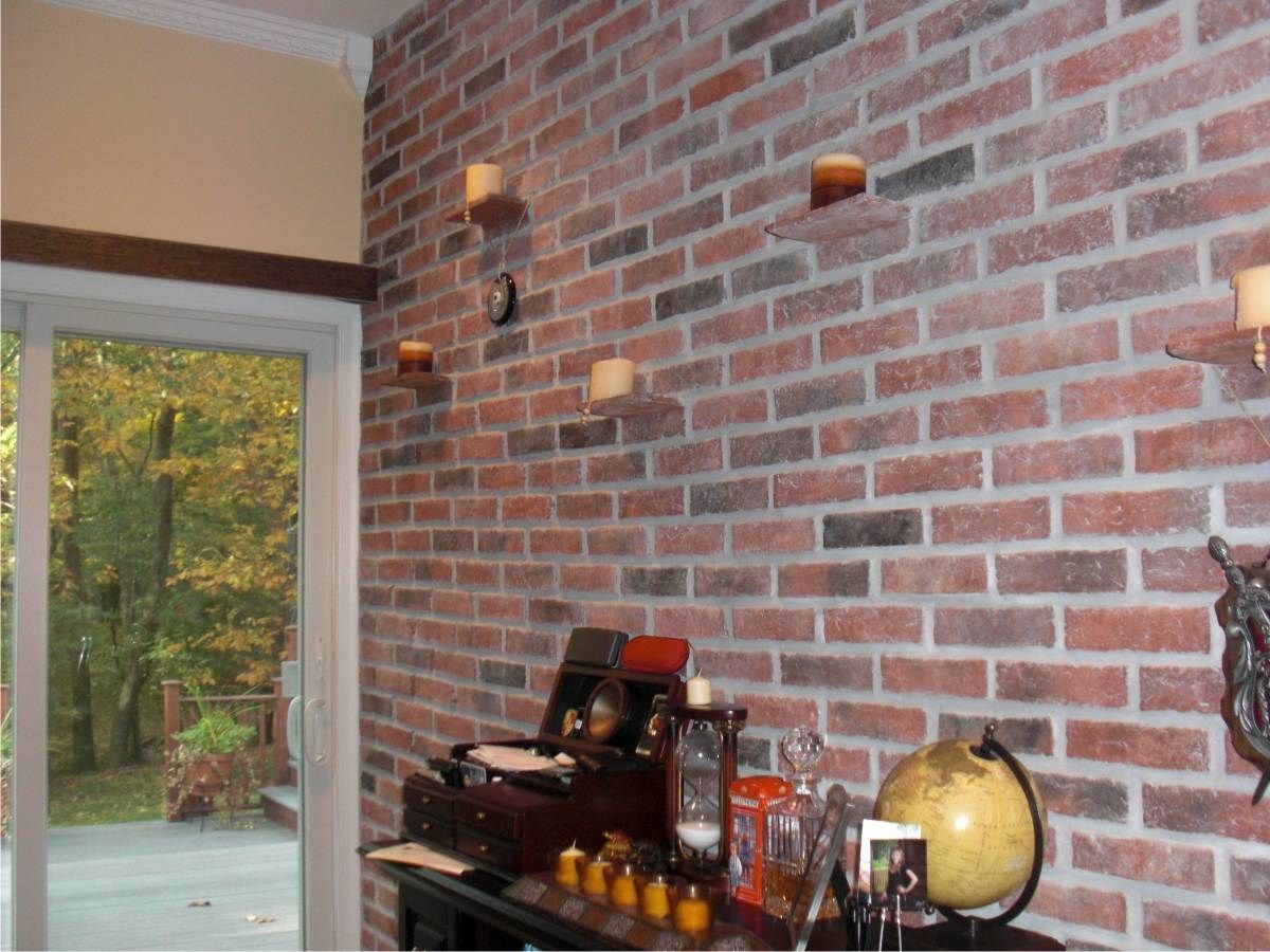 Из всего разнообразия материалов для отделки на основе искусственного камня, декоративный кирпич является самым легким. Поэтому он ничуть не утяжеляет фундамент и его можно монтировать даже на внутренние перегородки.