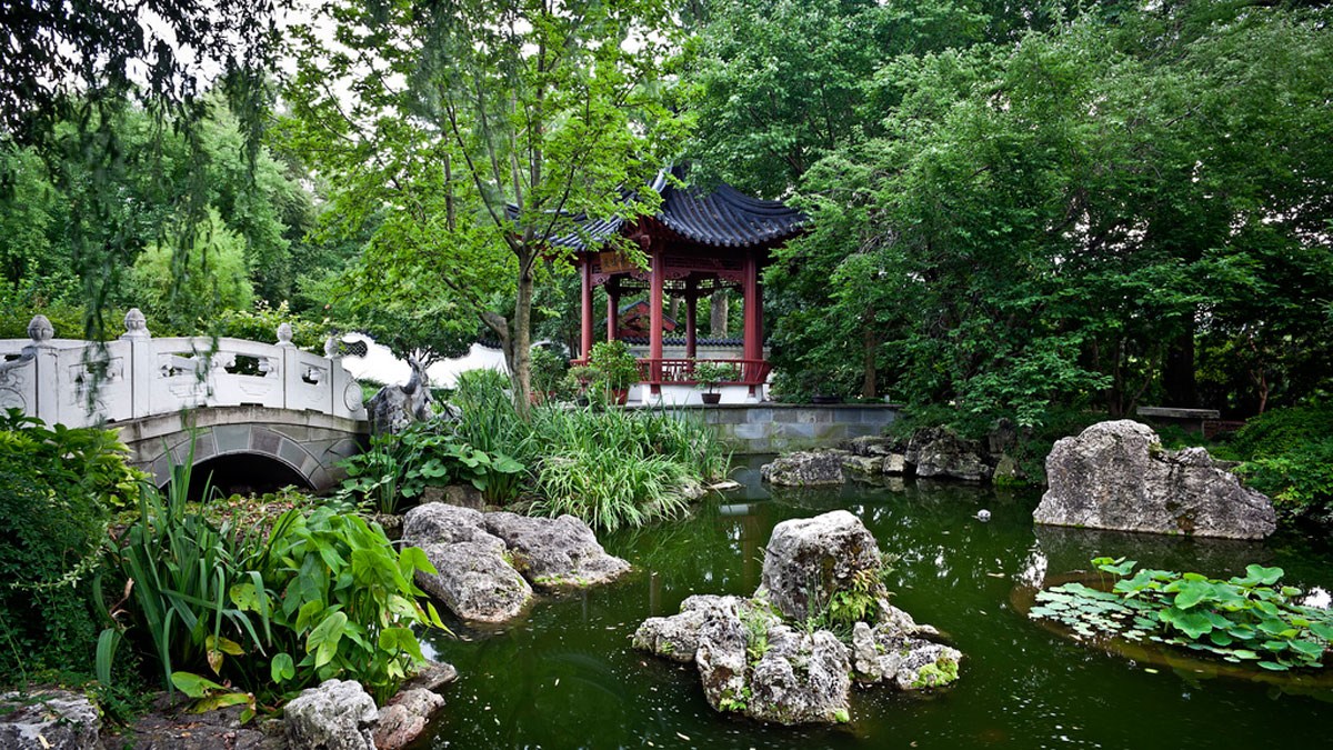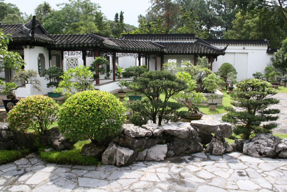 Все эти стили имеют немало нюансов, однако есть у них и общая черта — сохранение натурального баланса. Наибольшую популярность завоевал китайский стиль. Основной здесь является вода (водоем, водопад, ручей) и камни. Вода должна находиться в центре сада. Если по каким-то причинам вы не хотите делать настоящий водоем, то «имитируйте» водную гладь при помощи небольших камней. Но в любом случае вокруг воды должны иметься хаотично разложенные камни. Также нужно высадить деревья. Уместны в данном случае и цветы, скульптуры зверей или мозаика из разноцветной гальки.